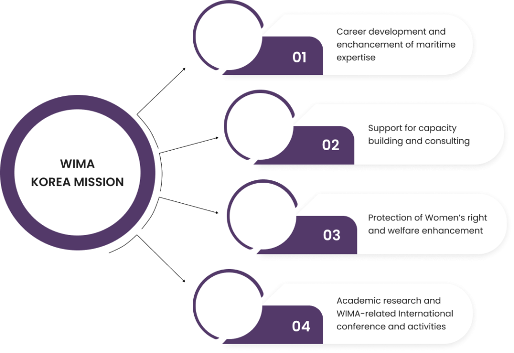 The mission of WIMA Korea isto establish a robust network for women in the maritime area, encourage professional development, improve competencies and proficiencies, protect women’s rights and welfare, enhance the social status of women, and contribute to the development of the maritime industry in Korea.